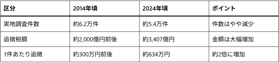 税務調査の変化を数値で比較してみます。