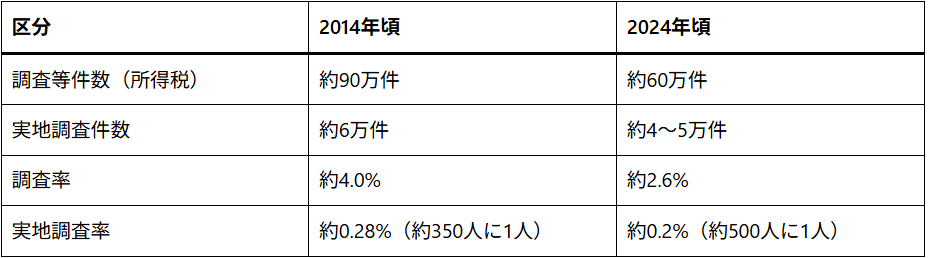 今後、KSK2の本格稼働により、データ活用はさらに進むと考えられており、税務調査はすでに「件数重視」から「精度重視」へと変わり始めています。それにより、調査率は下がったものの、調査の中身はより厳しくなっていると言えるでしょう。